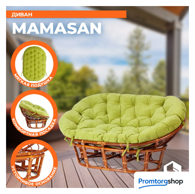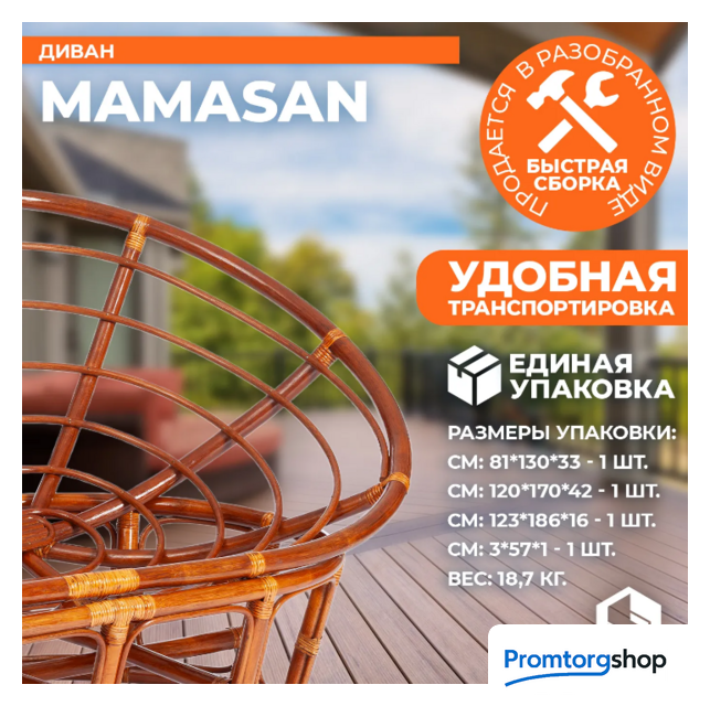 | Материал основания | натуральный ротанг. Максимальная нагрузка 130 кг. Форма поставки в разобранном виде |