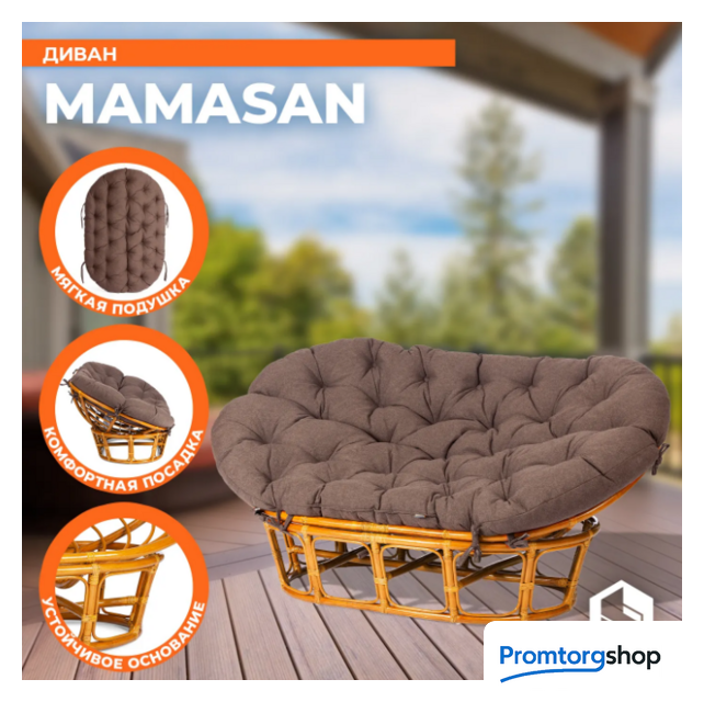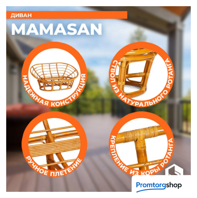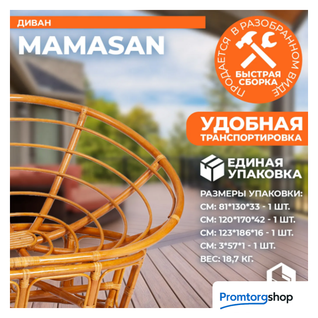 | Материал основания | натуральный ротанг. Максимальная нагрузка 130 кг. Форма поставки в разобранном виде |