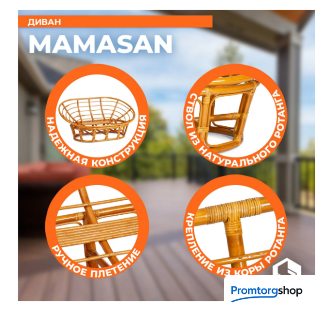 | Материал основания | натуральный ротанг. Максимальная нагрузка 130 кг. Форма поставки в разобранном виде |