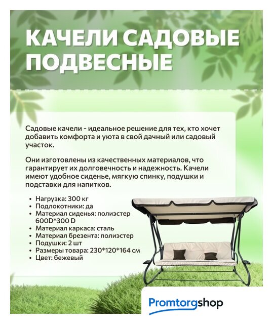 | Тип | садовые качели. Форма поставки в разобранном виде |