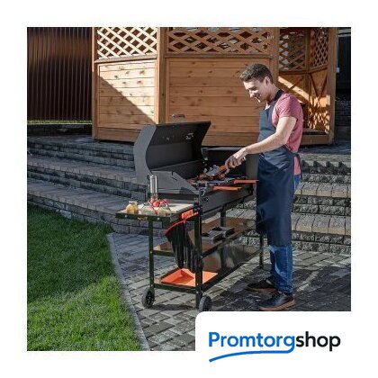 | Комплект поставки | Жаровня - 1 шт.Ножка - 4 шт.Зольник - 3 шт.Опора зольника - 4 шт.Столик с подстаканниками - 1 шт.Опорная планка - 1 шт.Держатель инструментов малый - 1 шт.Кронштейн столика - 4 шт.Прокладка - 4 шт.Лоток - 1 шт.Полка - 1 шт.Держатель инструментов - 1 шт.Кронштейн крышки - 2 шт.Панель крышки - 1 шт.Крышка-гриль - 1 шт.Ручка крышки - 1 шт.Ручка мангала - 1шт.Колесо - 2 шт.Ось колеса - 2 шт.Колпачок - 2 шт.Разделитель жаровни - 1 штПерекладина жаровни - 1 шт.Столик сплошной - 1 шт.Скоба угольно лифта - 2 шт.Угольный лифт - 1 шт.Рамка решетки - 2 шт.Уголок решетки - 4 шт.Пруток решетки - 30 шт.Ручка решетки - 2 шт.Ручка лифта - 2 шт.Полка сплошная - 1 шт.Дверка жаровни - 1 шт.Фиксатор - 1 шт.Дымоход - 1 шт.Заслонка дымохода - 1 шт.Подставка под казан - 1 шт.Конфорка - 1 шт. |
