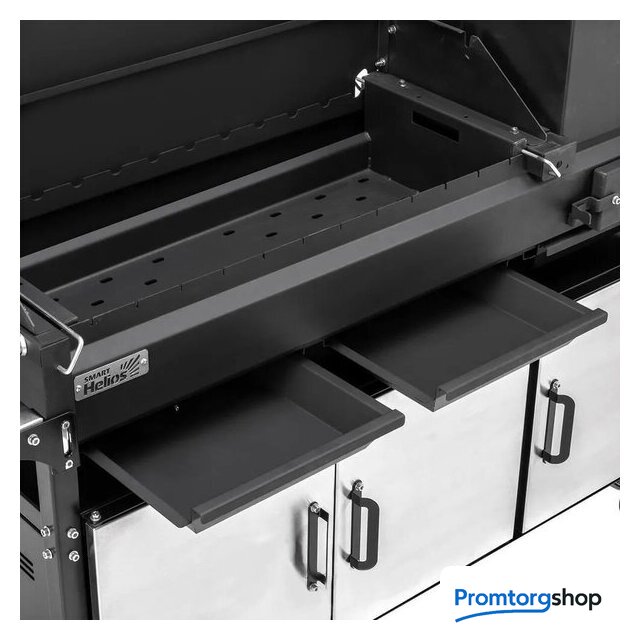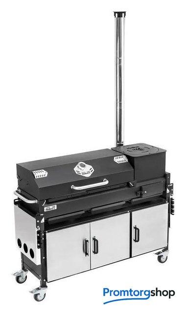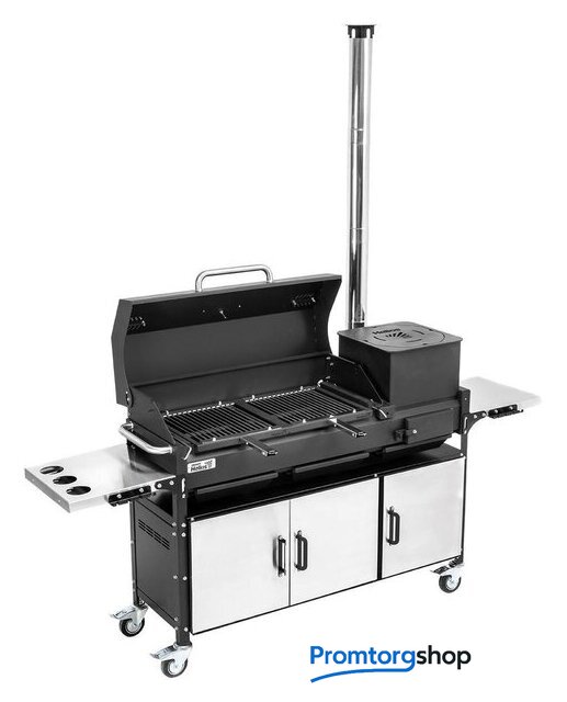 | Комплект поставки | 1. Жаровня — 1 шт.2. Ножка — 4 шт.3. Зольник — 3 шт.4. Опора зольника — 4 шт. (боковая — 2 шт., средняя — 2 шт.).5. Столик с подстаканниками — 1 шт.6. Столик сплошной — 1 шт.7. Кронштейн столика — 4 шт.8. Прокладка — 4 шт.9. Лоток — 1 шт.10. Полка большая — 1 шт.11. Полка малая — 1 шт.12. Полка под лоток — 1 шт.13. Датчик температуры — 1шт.14. Кронштейн крышки-гриль — 2 шт.15. Панель крышки-гриль — 1 шт.16. Крышка-гриль — 1 шт.17. Ручка крышки-гриль — 1 шт.18. Ручка мангала — 1 шт.19. Колесо усиленное — 4 шт.20. Разделитель жаровни — 1 шт21. Перекладина жаровни — 1 шт.22. Держатель инструментов — 3 шт.23. Скоба угольно лифта — 2 шт.24. Угольный лифт — 1 шт.25. Ручка лифта — 2 шт.26. Уголок решетки — 4 шт.27. Пруток решетки — 30 шт.28. Рамка решетки — 2 шт.29. Ручка решетки — 2 шт.30. Дверка жаровни — 1 шт.31. Фиксатор дверки — 1 шт.32. Дымоход — 1 шт.33. Труба дымохода — 2 шт.34. Труба с искрогасителем — 1 шт.35. Заслонка дымохода — 1 шт.36. Подставка под казан — 1 шт.37. Конфорка — 1 шт.38. Перегородка внутренняя — 1 шт.39. Панель задняя — 1 шт.40. Двери — 3 шт.41. Уголок — 2 шт.42. Панель боковая — 2 шт.43. Ручка двери — 3 шт.44. Шайба специальная для дверок - 6 шт.45. Чехол на мангал |