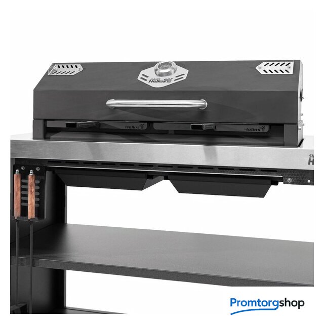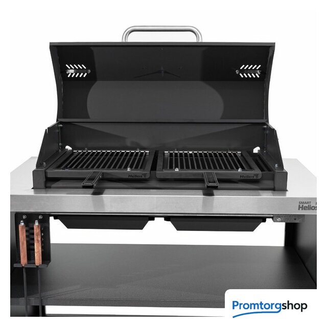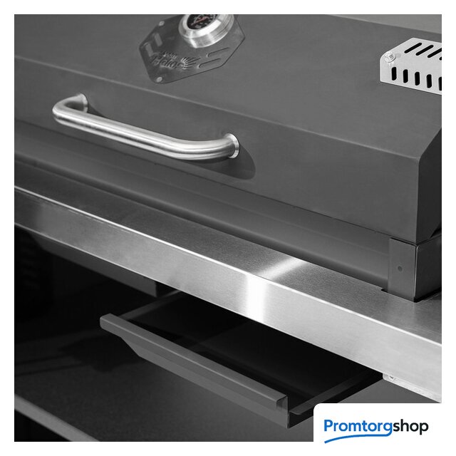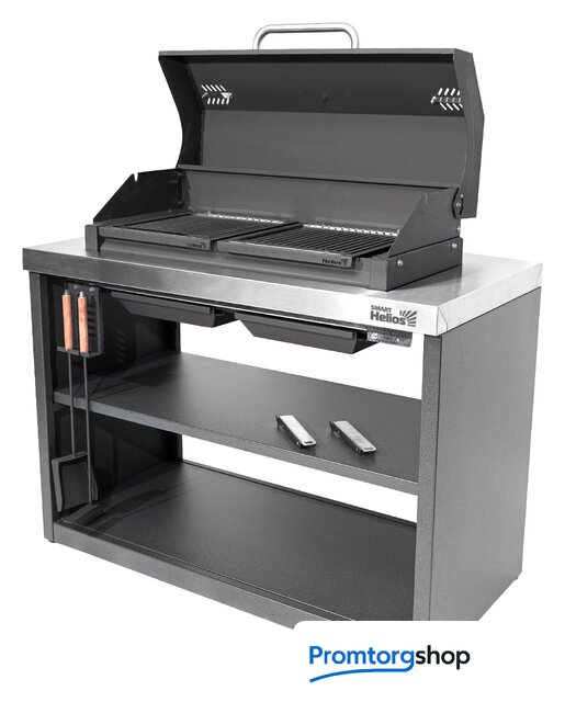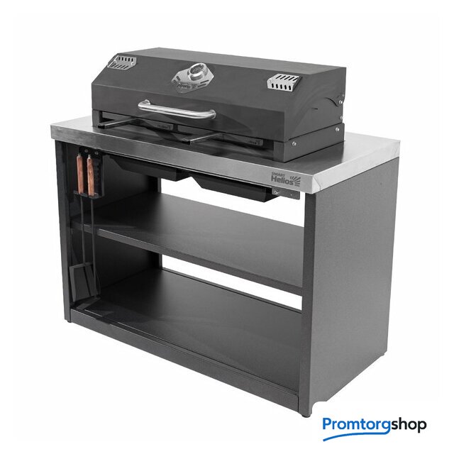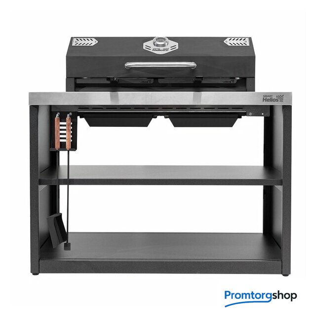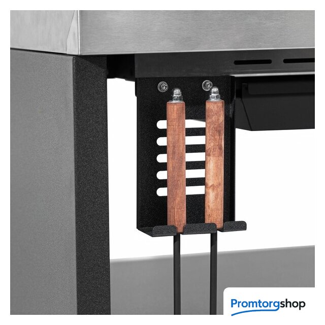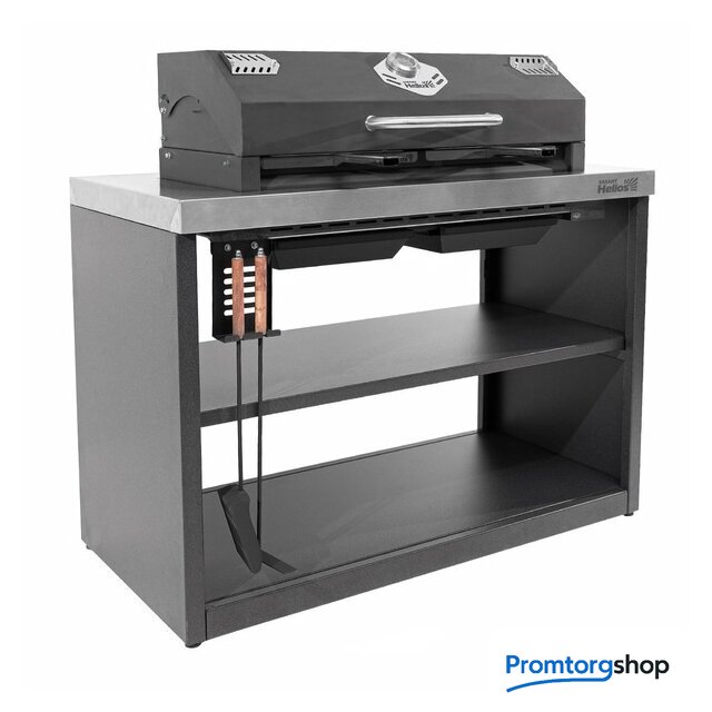 | Материал | сталь (2 мм—жаровня, цоколь, опора, 1 мм—столешница, полки, 1.5 мм—каркас), нержавеющая сталь (столешница) |