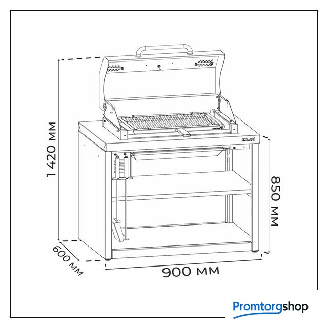 | Комплект поставки | термометр, решетка (2 шт.), крышка, золосборник (2 шт.), жаровня, ручка, столешница, шкаф, крючки для аксессуаров, дровница, ножки (4 шт.), кочерга, совок, полка |