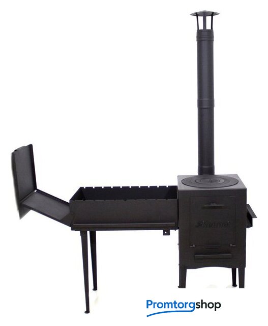 | Комплект поставки | решетка, печь под казан, золосборник, ручки (2 шт. по бокам, 1 шт. на дверце), дверца, дымоход, ножки, жаровня, труба, крышка-столик |