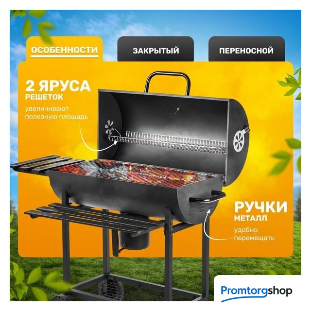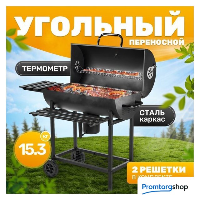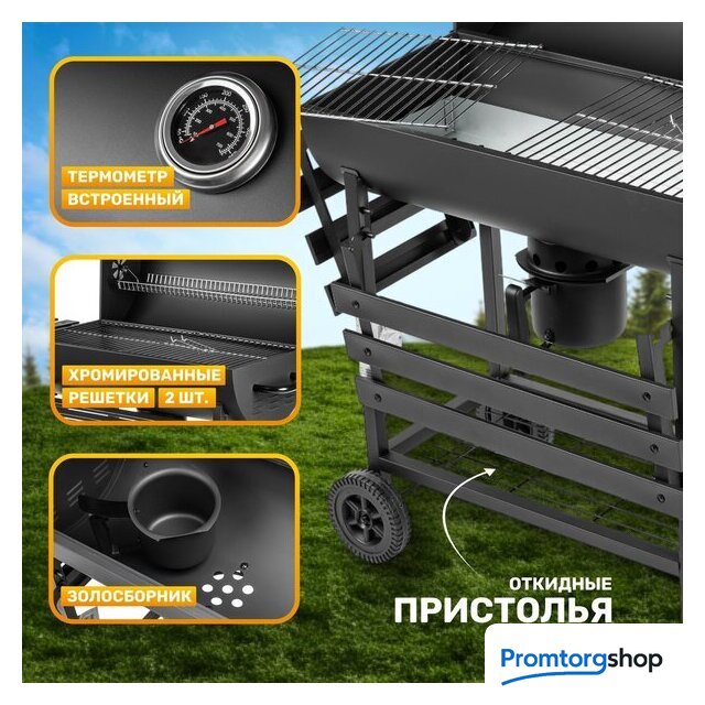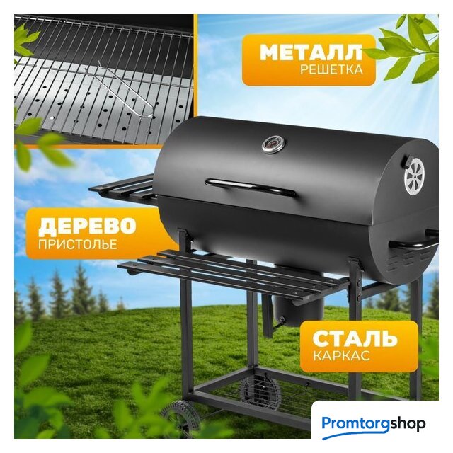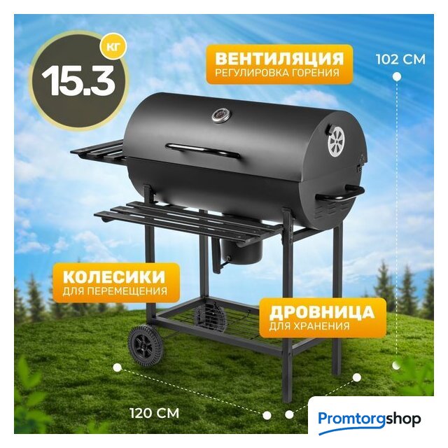 | Комплект поставки | крышка, встроенный термометр, столешница (пристолье) (2 шт.), дровница, колеса (2 шт.), решетка (2 шт.), золосборник |