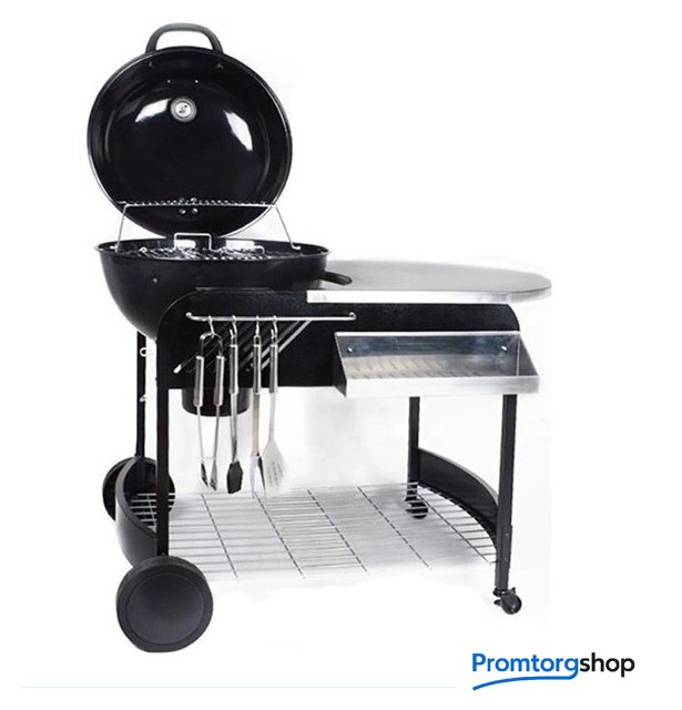 | Комплект поставки | держатель шампуров (полка), дровница, золосборник, колеса (4 шт.), крючки для аксессуаров, решетка (1 шт. для барбекю, 1 шт. для угля), столешница (пристолье), встроенный термометр, крышка |