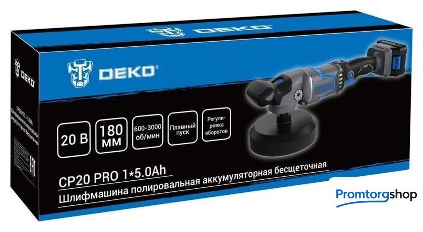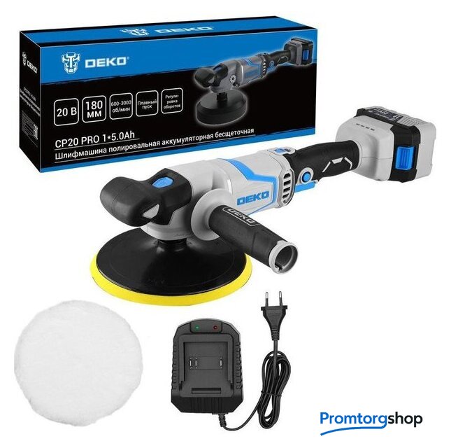 | Комплект поставки | - Шлифмашина – 1 шт.- Опорная тарелка – 1 шт.- Полировальный круг (шерстяной) – 1 шт.- Аккумулятор 5,0 Ач – 1 шт.- Зарядное устройство – 1 шт.- Дополнительная рукоятка – 1 шт.- Руководство по эксплуатации- Коробка |