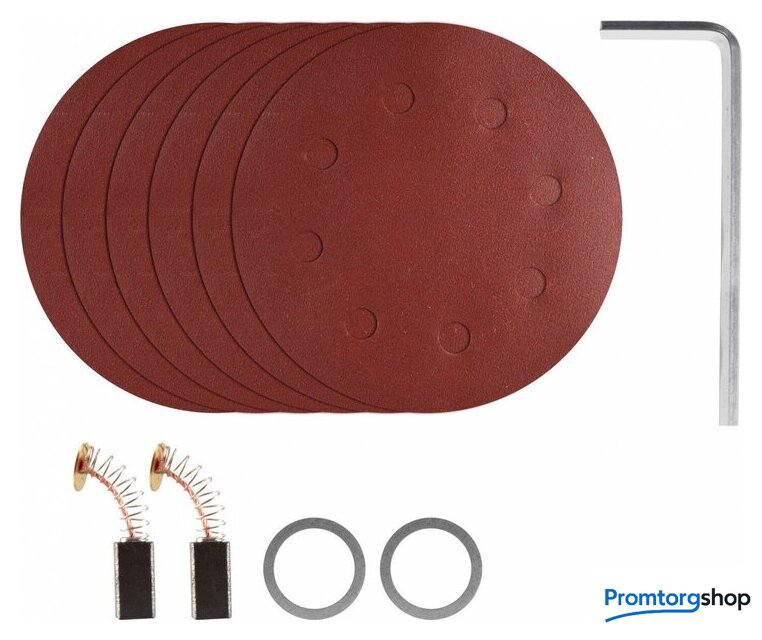 Комплект поставки | машина шлифовальная в сборе, боковая ручка - 1 шт., инструкция по эксплуатации - 1 шт., щетки угольные - 1 шт., ключ шестигранный - 1 шт., шланг гофрированный 2 м - 1 шт., мешок для сбора пыли - 1 шт., круг шлифовальный - 6 шт., шайбы для регулировки высоты шлифовального круга - 3 шт., индивидуальная коробка |