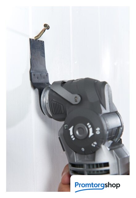 | Комплект поставки | Полотно для обрезки заподлицо, шт. - 2Полотно для дерева / металлаШлифовальный круг 19 мм, шт. - 1Шлифлисты 60 зернистость, шт. - 8Шлифлисты 80 зернистость, шт. - 8Шлифлисты 120 зернистость, шт. - 8СкребокОграничительКлючУниверсальный переходникПоставляется в сумке для инструмента |