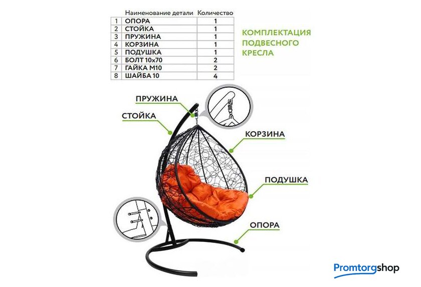 | Тип | подвесное кресло для сада, для лоджии/балкона, для веранды/загородного дома, Форма поставки в разобранном виде |