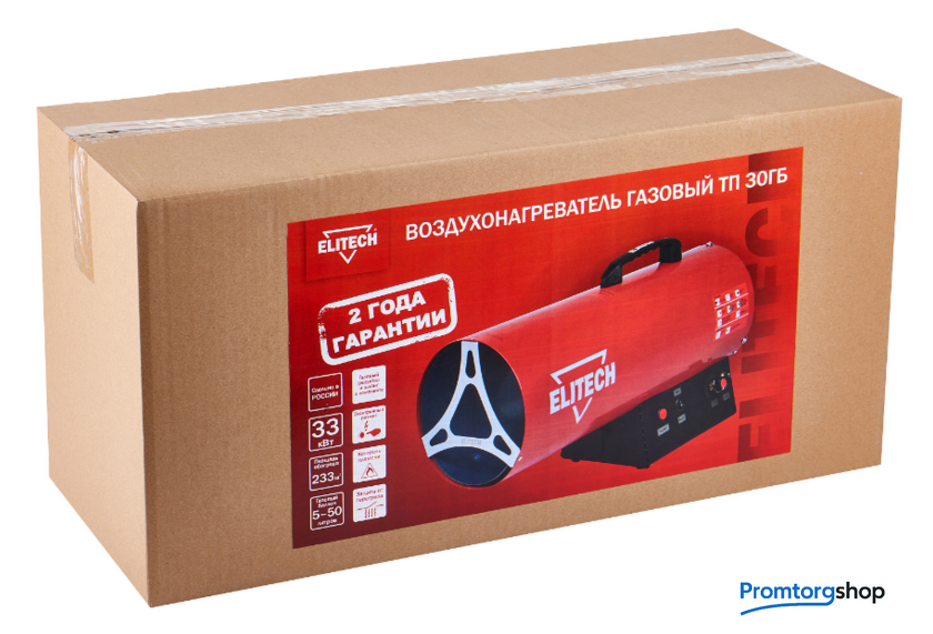 | Тип | газовая (пропан/бутан). Инструменты ELITECH серии " Стандарт" неприхотливы и надёжны, рассчитаны на продолжительные, интенсивные нагрузки. Обладают необходимыми степенями защиты от влаги, пыли и нестабильного напряжения в сети. Газовая тепловая пушка Elitech ТП 30ГБ обеспечивает быстрый обогрев помещений площадью до 233 м². Для использования данного устройства необходима хорошая вентиляция обогреваемого помещения. Пушка имеет электронный розжиг. Передняя решетка на сопле, выполненная из листовой нержавеющей стали, обеспечивает защиту пушки от попадания внутрь посторонних предметов. Дполнительные данные: длина кабеля питания - 1,2 метра; газовый шланг: 2 метра; тип газового шланга: EN 16436 (присоединительные размеры: G3/8LH и G3/8LH). Преимущества Elitech ТП 30ГБ Пушка предназначена для обогрева хорошо вентилируемых производственных, общественных, складских помещений, а также на строительных площадках. Исполнение газовой тепловой пушки Elitech ТП 30ГБ - переносное, рабочее положение – установка на полу, условия эксплуатации – работа под надзором. Высокий КПД. Регулировка тепловой мощности. Регулировка наклона пушки. Низкое потребление электроэнергии. I класс электрозащиты. Применение с баллонами различного объема. Тип розжига - электронный . Регулировка наклона корпуса. Форсунка 1,25 мм. Задняя решетка - проволочная из нержавеющей стали. Передняя решетка - листовая нержавеющая сталь. Пластиковая ручка для транспортировки. Резьба присоединения шланга G1/4”. Длина присоединительного штуцера 25 мм. |
