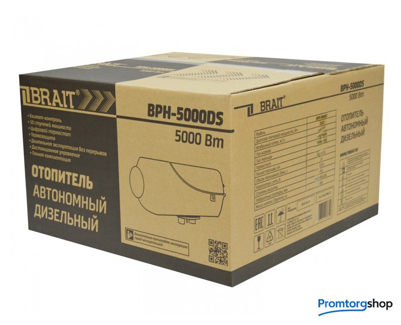 Тип | тепловая пушка дизельная. Температура эксплуатации 0-45°C. КОМФОРТ И НАДЕЖНОСТЬ В ХОЛОДНОЕ ВРЕМЯ ГОДА С BRAIT Отопитель автономный дизельный BPH-5000DS обеспечивает быстрый и эффективный обогрев салона автомобиля, грузового автомобиля, спецтехники или легкового автомобиля. Мощность - 5 кВт позволяет поддерживать комфортную температуру в салоне, предотвращая замерзание и обеспечивая уют в холодное время года. Управление отопителем осуществляется с помощью пульта дистанционного управления, что делает его использование удобным и простым. Вид топлива – дизель, что делает отопитель экономичным и экологичным решением. Подключение 2 в 1 - 12V\24V это делает его совместимым с большинством автомобилей и спецтехники. Видеообзор на отопитель автономный дизельный доступен по ссылке : https://vkvideo.ru/@brait_company/clips?z=clip-202108916_456239480%2Fclub202108916 ПРЕИМУЩЕСТВА: Мобильный. Автономный. Оснащен компактным корпусом. Самая полная комплектация. Готов к использованию. Цифровой термостат повышенной чувствительности. Термозащита - подача топлива прекращается в случае перегрева прибора. 10 ступеней мощности — возможность задать подходящую мощность обогрева. Легкий запуск – старт работы происходит простым нажатием кнопки. Удобный LED дисплей. Дистанционное управление до 100 м — включение/выключение отопителя с помощью пульта ДУ. Длительная эксплуатация без перерывов. |