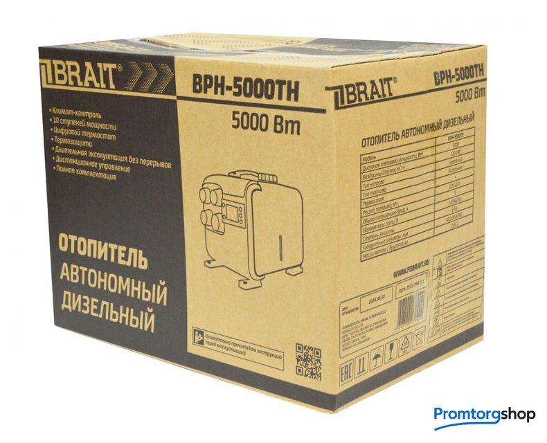 Тип | тепловая пушка дизельная. Температура эксплуатации 0-45°C. Отопитель автономный дизельный BPH-5000TH обеспечивает быстрый и эффективный обогрев салона автомобиля, грузового автомобиля, спецтехники или легкового автомобиля. Мощность - 5 кВт позволяет поддерживать комфортную температуру в салоне, предотвращая замерзание и обеспечивая уют в холодное время года. Управление отопителем осуществляется с помощью пульта дистанционного управления, что делает его использование удобным и простым. Вид топлива – дизель, что делает отопитель экономичным и экологичным решением. Подключение 3 в 1 - 12V\24V\220V это делает его совместимым с большинством автомобилей и спецтехники. ПРЕИМУЩЕСТВА: Мобильный. Автономный. Оснащен компактным корпусом. Самая полная комплектация. Готов к использованию. Встроенный цифровой термостат повышенной чувствительности. Термозащита - подача топлива прекращается в случае перегрева прибора. 10 ступеней мощности — возможность задать подходящую мощность обогрева. Легкий запуск – старт работы происходит простым нажатием кнопки. Компактный и удобный LED дисплей. Дистанционное управление до 100 м — включение/выключение отопителя с помощью пульта ДУ. Удобная рукоятка для перемещения. Длительная эксплуатация без перерывов. |