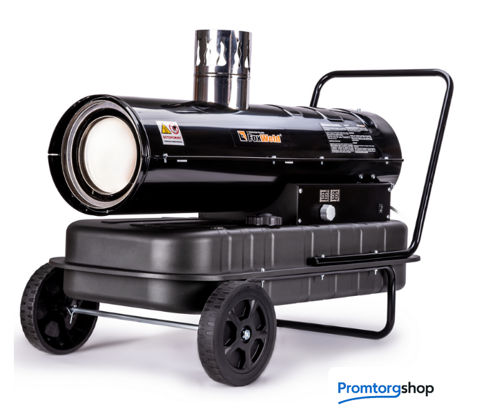 | Тип | Дизельная тепловая пушка косвенного нагрева FoxHeat DI 30 [30 кВт] предназначена для обогрева промышленных, строительных, сельскохозяйственных объектов, в том числе складских помещений. Благодаря непрямому нагреву может быть ограниченно использована в обогреве помещений временного пребывания людей, животноводческих ферм, теплиц, торговых залов и павильонов. По принципу действия устройство является обогревателем непрямого нагрева. Воздушный поток продувает многоконтурный теплообменник герметичной камеры сгорания, по контурам которого продукты горения отводятся в сторону выхлопной трубы. Для работы внутри помещения выхлопную трубу необходимо подключить к дымоходу с соблюдением соответствующих требований. Несмотря на сверхэффективную конструкцию для компенсации небольшого снижения кислорода в обогреваемых такой пушкой помещениях всё равно требуется по крайней мере пассивная вентиляция (типа фрамуг, форточек и т.п.). По эффективности обогрева дизельные пушки косвенного нагрева FoxHeat не уступают многим моделям пушек с прямым нагревом благодаря применению трёхконтурного теплообменника. Устройство выполнено в надёжном жаропрочном корпусе и снабжено транспортировочным комплектом для комфортного перемещения между рабочими зонами. Удобная контрольная панель снабжена двумя дисплеями для отображения заданной температуры и температуры воздуха в обогреваемом помещении. Реализована функция "климат-контроль": при достижении заданной температуры устройство переходит в режим ожидания и вновь стартует при отклонении от неё. Уровень топлива можно отслеживать через встроенный указатель. Подача топлива, поджиг, контроль горения полностью автоматизированы. Безопасность работы обеспечена защитой от перегрева, защитой от отключения питания, защитой от затухания пламени и контролем пустого. В каждом из этих случаев моментально будет блокирована подача топлива в камеру сгорания с выводом соответствующего кода ошибки на один из дисплеев. Для дополнительного обеспечения безопасности в устройство добавлена функция отложенной остановки вентилятора. В течение примерно 2 минут после выключения пушки вентилятор продолжает продувать её холодным воздухом, охлаждая камеру сгорания. После окончания продувки пушку можно отключить от электрической сети. Высокотехнологичная камера сгорания из нержавеющей стали с активным охлаждением, производительный топливный насос, эффективный топливный фильтр, впрыск под низким давлением позволяют полностью сжигать горючую смесь, увеличивая эффективность пушки и делая выхлоп чище. Максимальная тепловая мощность достигает 30 кВт при скорости воздушного потока 793 куб м / ч. Устройству необходимо подключение к бытовой розетке 16А/230В для обеспечения работы вентилятора, создающему поток воздуха для обогрева помещения, а также обеспечивающему подачу кислорода, необходимого для горения топлива. Топливо: дизельное топливо, соответствующее ГОСТ 305-82. ВНИМАНИЕ. Несмотря на многоуровневую систему защиты, данное устройство требует постоянного контроля со стороны пользователя. ВНИМАНИЕ. ОСТОРОЖНО. Необходимо соблюдать осторожность и базовые правила безопасности при работе с нагревательными приборами! Пожалуйста, прочтите инструкцию по эксплуатации перед использованием устройства. ЗАПРЕЩЕ
