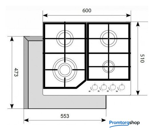 Подробная информация о конфорках | ТУРБО-конфорка: 1 × 3300 ВтСтандартная конфорка: 2 × 1750 ВтВспомогательная конфорка: 1 × 1000 Вт |