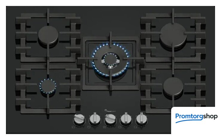 Подробная информация о конфорках | Передняя левая - 1 кВт; передняя правая - 1.75 кВт; задняя левая - 1.75 кВт; задняя правая - 3.0 кВт; центральная - DualWok 4 кВт |