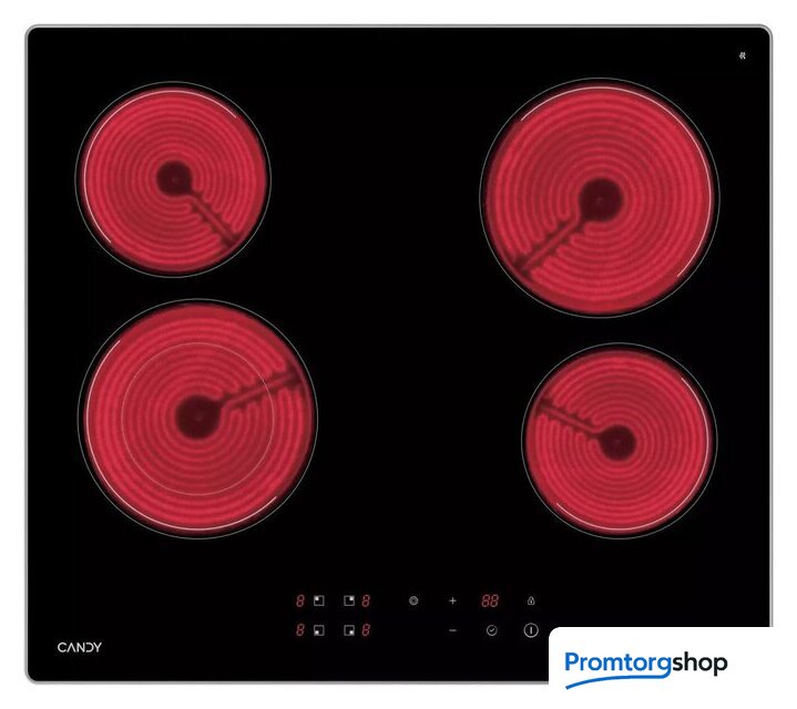 | Подробная информация о конфорках | Передняя левая конфорка - диаметр 180 мм, мощность 0.7 кВт (1.7 кВт в режиме расширения); передняя правая - диаметр 145 мм, мощность 1.2 кВт; задняя левая - диаметр 145 мм, мощность 1.2 кВт; задняя правая - диаметр 180 мм, мощность 1.8 кВт. |