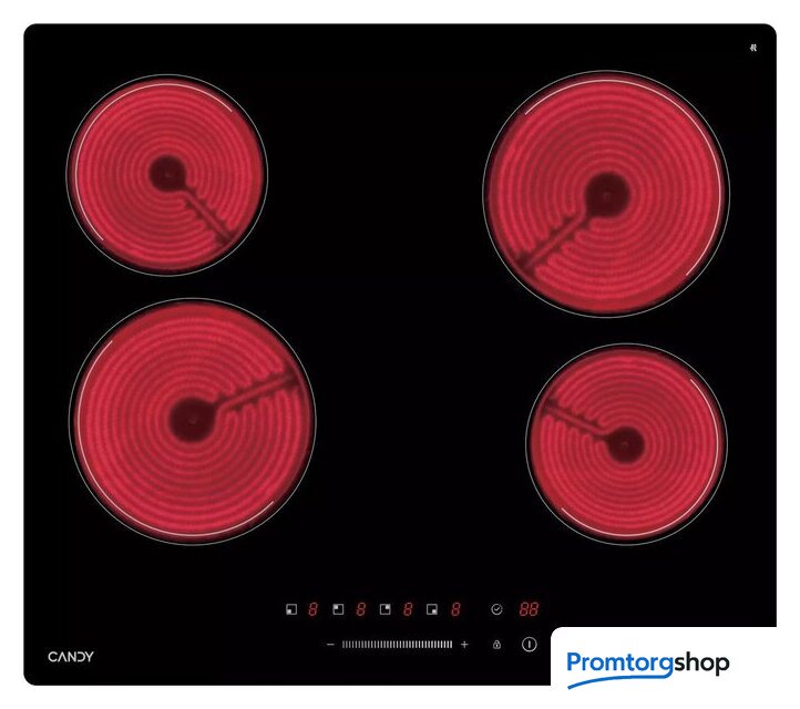 | Подробная информация о конфорках | Передняя левая - 180 мм / 1.8 кВт; Передняя правая - 145 мм / 1.2 кВт; Задняя левая - 145 мм / 1.2 кВт; Задняя правая - 180 мм / 1.8 кВт |