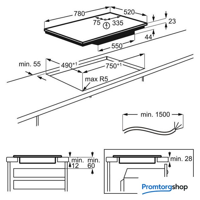 Подробная информация о конфорках | 4 х 2300/3200 Вт, 210 мм |