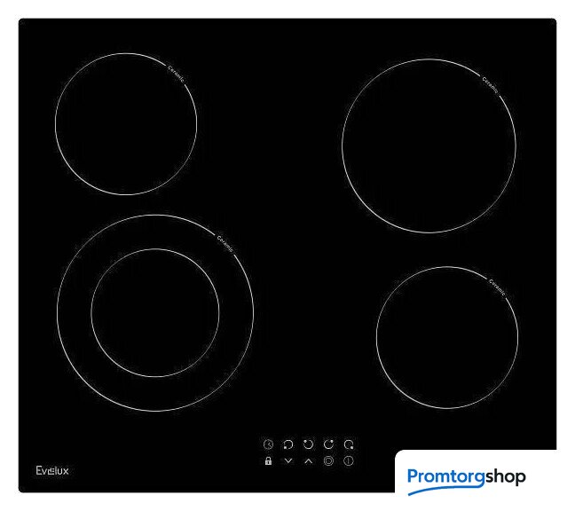 Подробная информация о конфорках | Мощность конфорки (передняя правая) 1.2 кВтМощность конфорки (передняя левая) 2.2 кВтМощность конфорки (задняя правая) 2 кВтМощность конфорки (задняя левая) 1.2 кВт |