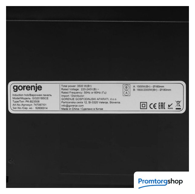 Изготовитель: «Горэнье Мора Груп», Партизанска12, 3503 Веленье, Словения / Gorenje Mora group, Partizanska12, 3503 Velenje, Slovenia