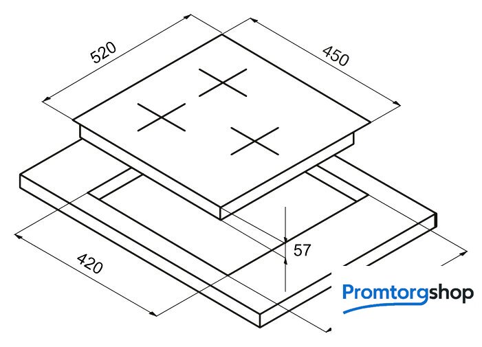 Подробная информация о конфорках | Маленькая конфорка 1кВт;Средняя конфорка 1.75 кВт;ВОК-конфорка 3.6 кВт. |
