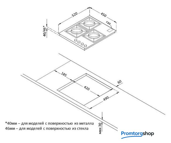 Подробная информация о конфорках | Левая дальняя конфорка (кВт): 1.7Левая ближняя конфорка (кВт): 0.95Сверхмощная конфорка (кВт): 3.1 |