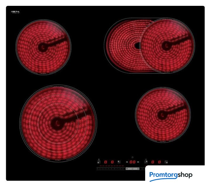 | Подробная информация о конфорках | Левая дальняя конфорка (мм/кВт): 165/1.2Левая ближняя конфорка (мм/кВт): 230/2300-1530W-770WПравая дальняя конфорка (мм/кВт): 270*165mm, 2000W/1100WПравая ближняя конфорка (мм/кВт): 165/1.2 |