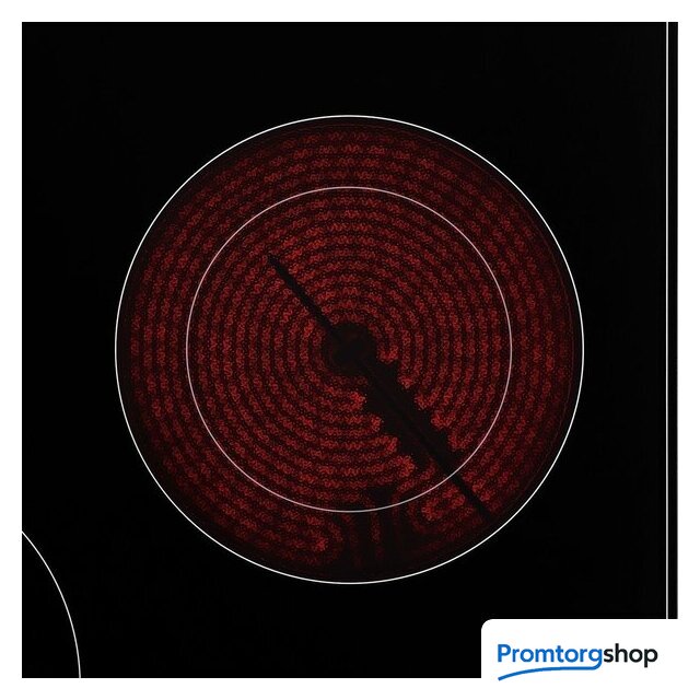 | Подробная информация о конфорках | Дальняя левая: 165 мм * 1,2 кВт; Ближняя левая: 200 мм * 1,8 кВт; Центральная правая: 120/200 мм * 1/2 кВт |