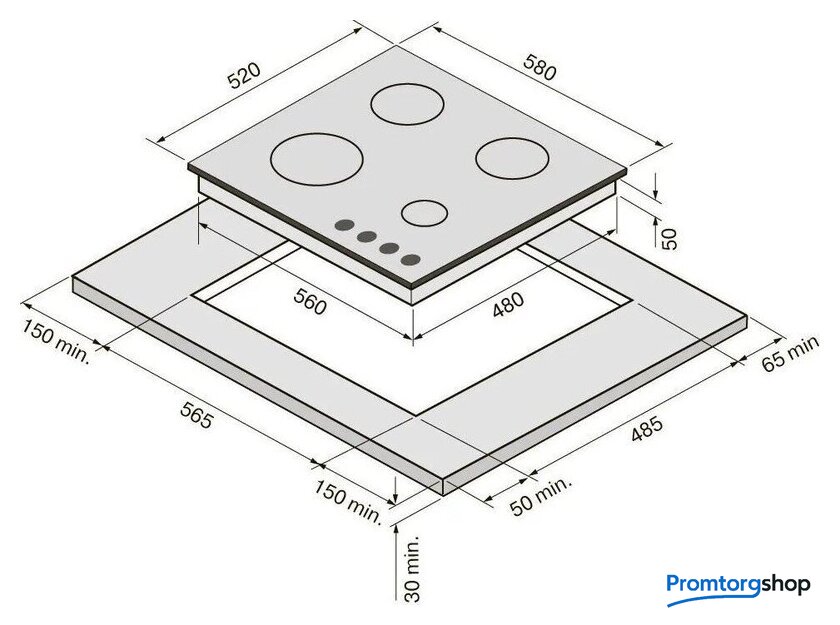 | Подробная информация о конфорках | Дальняя левая: 2 кВт; Дальняя правая: 2 кВт; Ближняя левая: 3,4 (WOK) кВт; Ближняя правая: 1 кВт |
