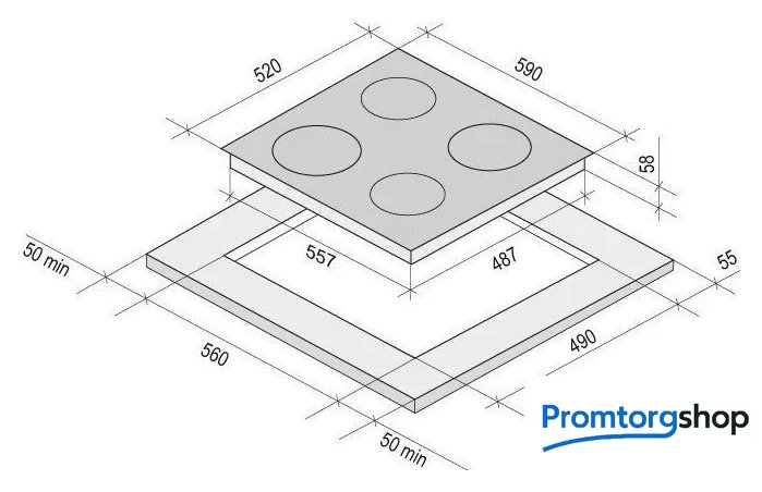 | Подробная информация о конфорках | Дальняя левая:160 мм, 1.4 кВт; Дальняя правая:180 мм, 1.8 кВт; Ближняя левая:210 мм, 1.8/2.2 кВт (Booster); Ближняя правая:160 мм, 1.4 кВт |