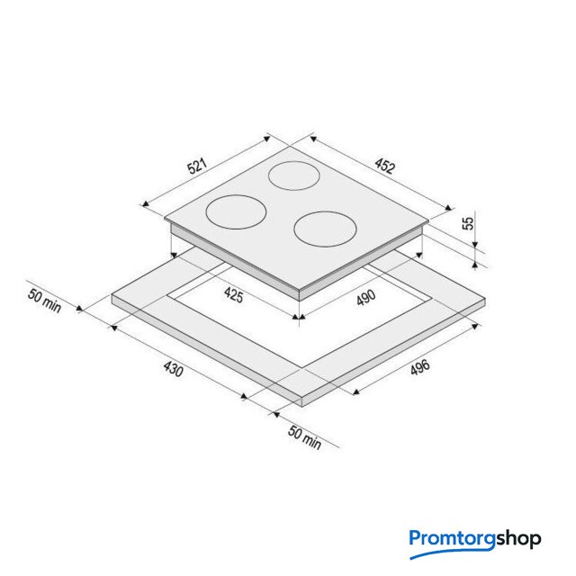 | Подробная информация о конфорках | Дальняя левая: 160 мм * 1,3/1,5 кВт; Ближняя левая: 210 мм * 2/2,2 кВт; Центральная правая: 160 мм * 1,3/1,5 кВт |
