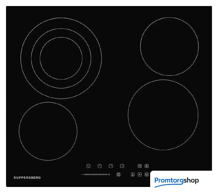 Подробная информация о конфорках | Ближняя левая, кВт 1.2Ближняя правая, кВт 1.8Дальняя левая, кВт 0.7 / 1.15 / 2.3Дальняя правая, кВт 1.2 |