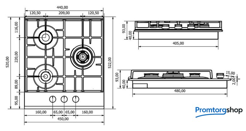 | Подробная информация о конфорках | Мощность конфорок, кВт: задняя левая: 1,75Мощность конфорок, кВт: задняя правая: 2,5Мощность конфорок, кВт: передняя левая: 1,0 |
