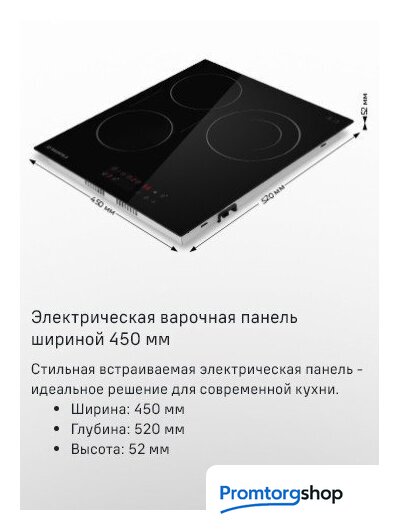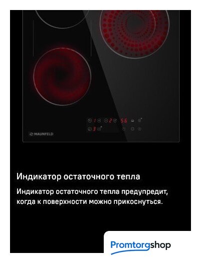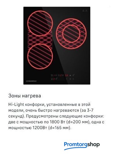 | Подробная информация о конфорках | 2х1200Вт1х900/1800 Вт |