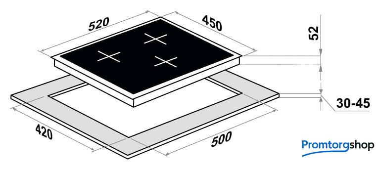 | Подробная информация о конфорках | 2х1200 Вт1х1800 Вт |
