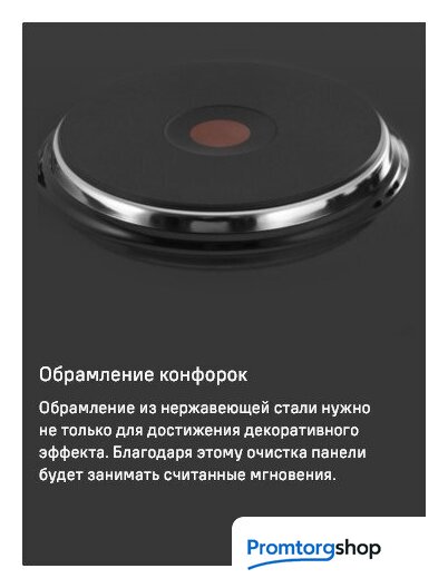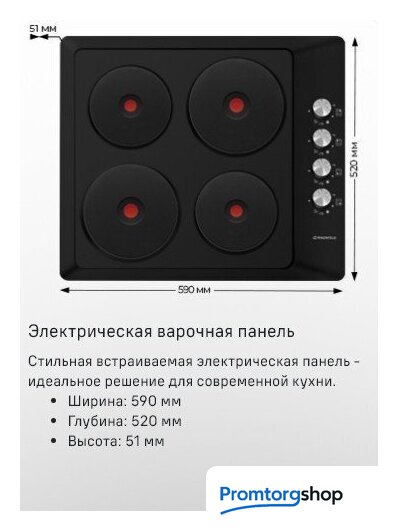 | Подробная информация о конфорках | Мощность конфорок, Вт.: 1500, 1500, 1500, 1500 |