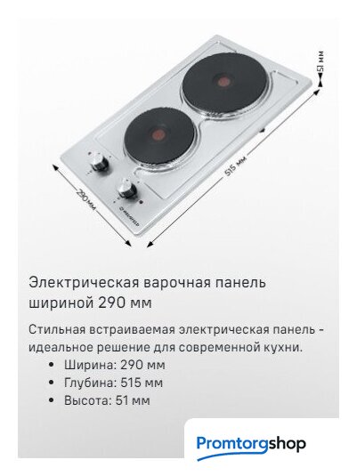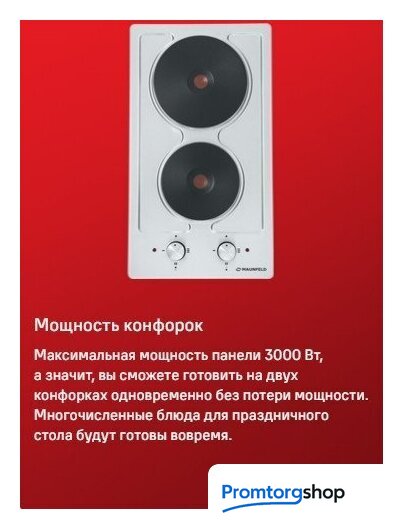 Подробная информация о конфорках | Мощность конфорок, Вт.: 1500, 1500 |