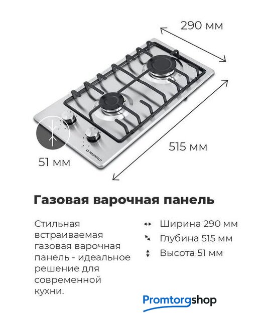 Подробная информация о конфорках | 2 конфорки мощностью: 2600, 1700 Вт |