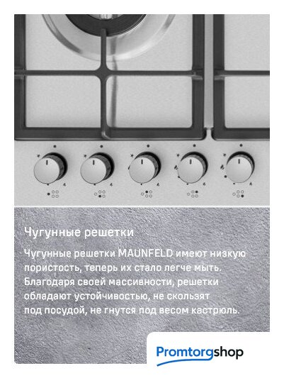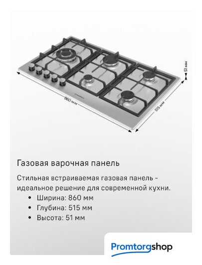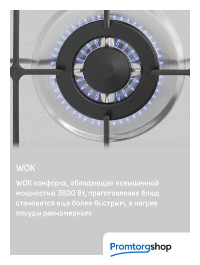Подробная информация о конфорках | 5 конфорок мощностью: 3800, 2600, 1700, 1700, 1000 Вт. |
