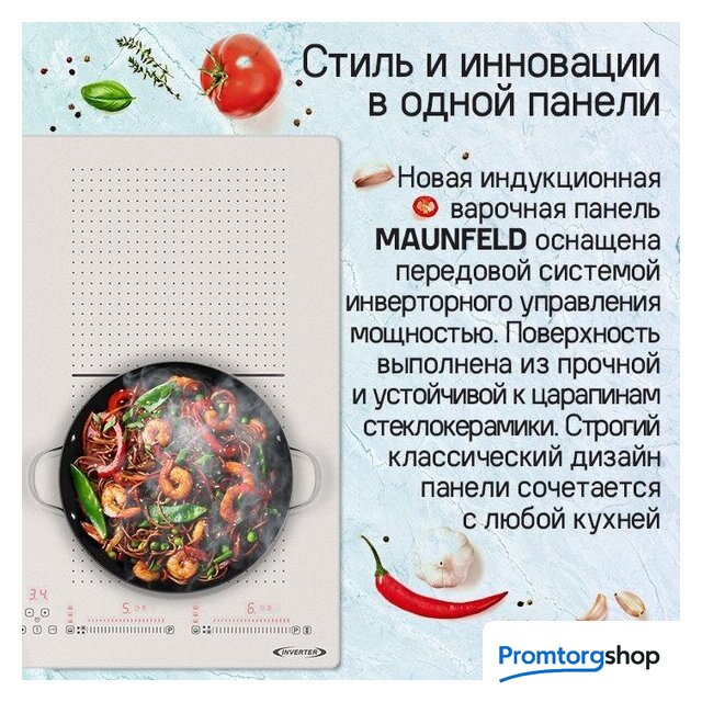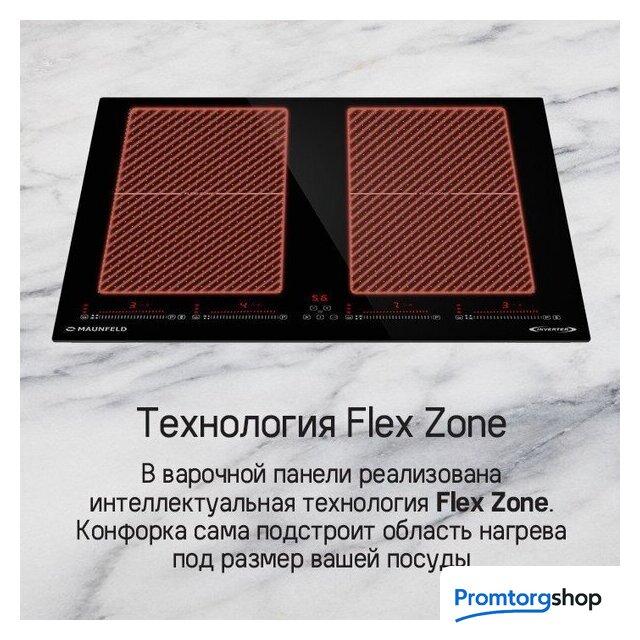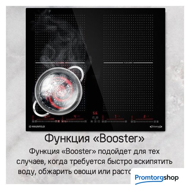 Подробная информация о конфорках | 2х2000Вт (бустер 2600Вт), 2х1500Вт (бустер 2000Вт) |