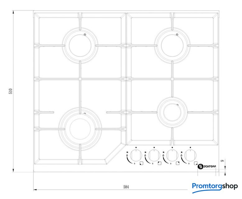 | Подробная информация о конфорках | Задняя левая 1,88 кВтЗадняя правая 1,88 кВтПередняя левая 2,4 кВтПередняя правая 0,9 кВт |