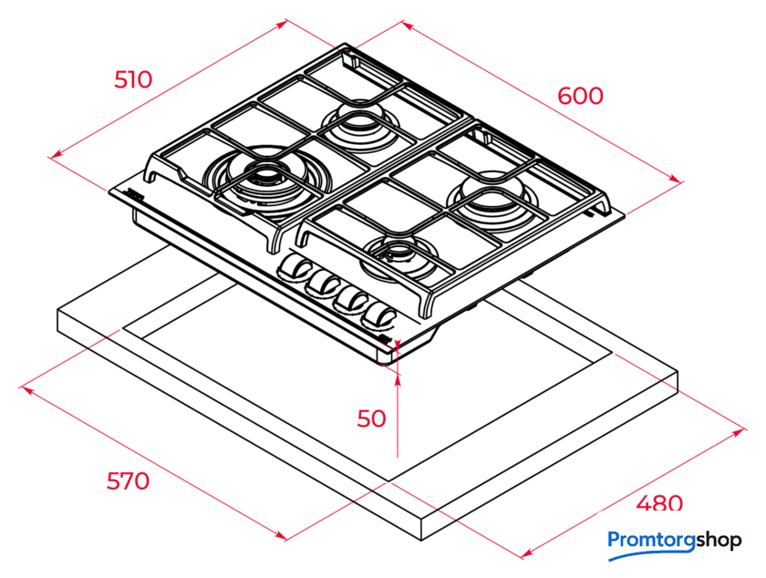 | Подробная информация о конфорках | 4 кВт2.8 кВт1.75 кВт1 кВт |