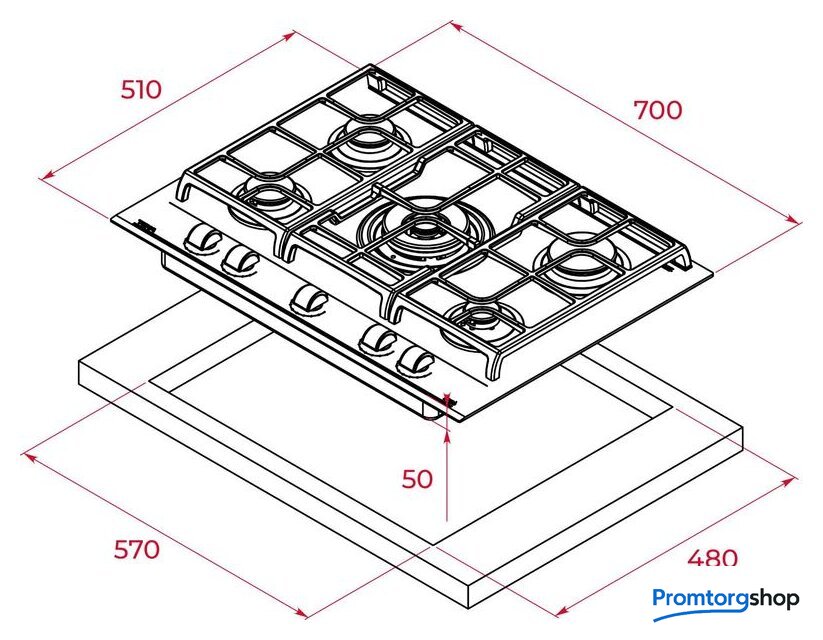 | Подробная информация о конфорках | 4 кВт2.8 кВт1.75 кВт1.75 кВт1 кВт |