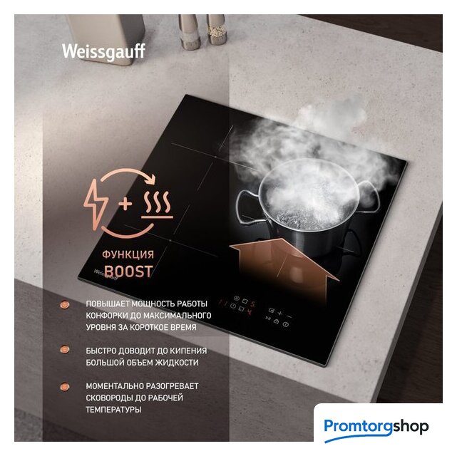 | Подробная информация о конфорках | 2 Ø180мм - 1800ВтBoost 2000Вт, 1 Ø 210мм - 2300ВтBoost 2500Вт |