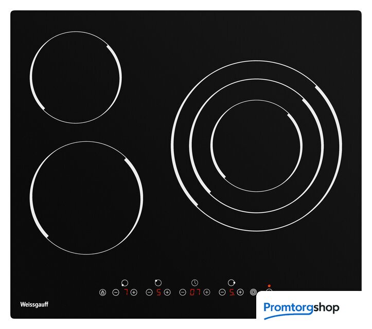 | Подробная информация о конфорках | 1x 165 мм*1,2 кВт (задняя левая) 1х 200 мм*1,8 кВт (передняя левая)1 х 140/210/300 мм*1,05/1,95/2,7 кВт (тройной контур) |