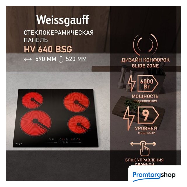 | Подробная информация о конфорках | 2хØ200*1,8 кВт, 2хØ165 мм*1,2 кВт |