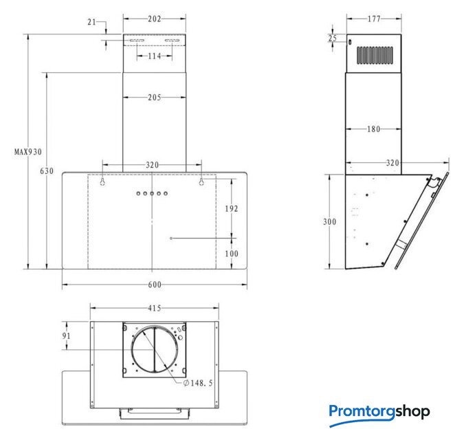 | Максимальная производительность отвода | 600 куб. м/ч |