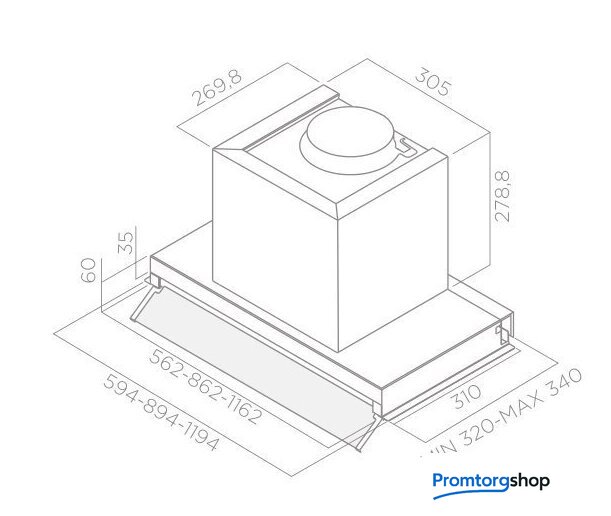 | Минимальная производительность отвода | 195 куб. м/ч |